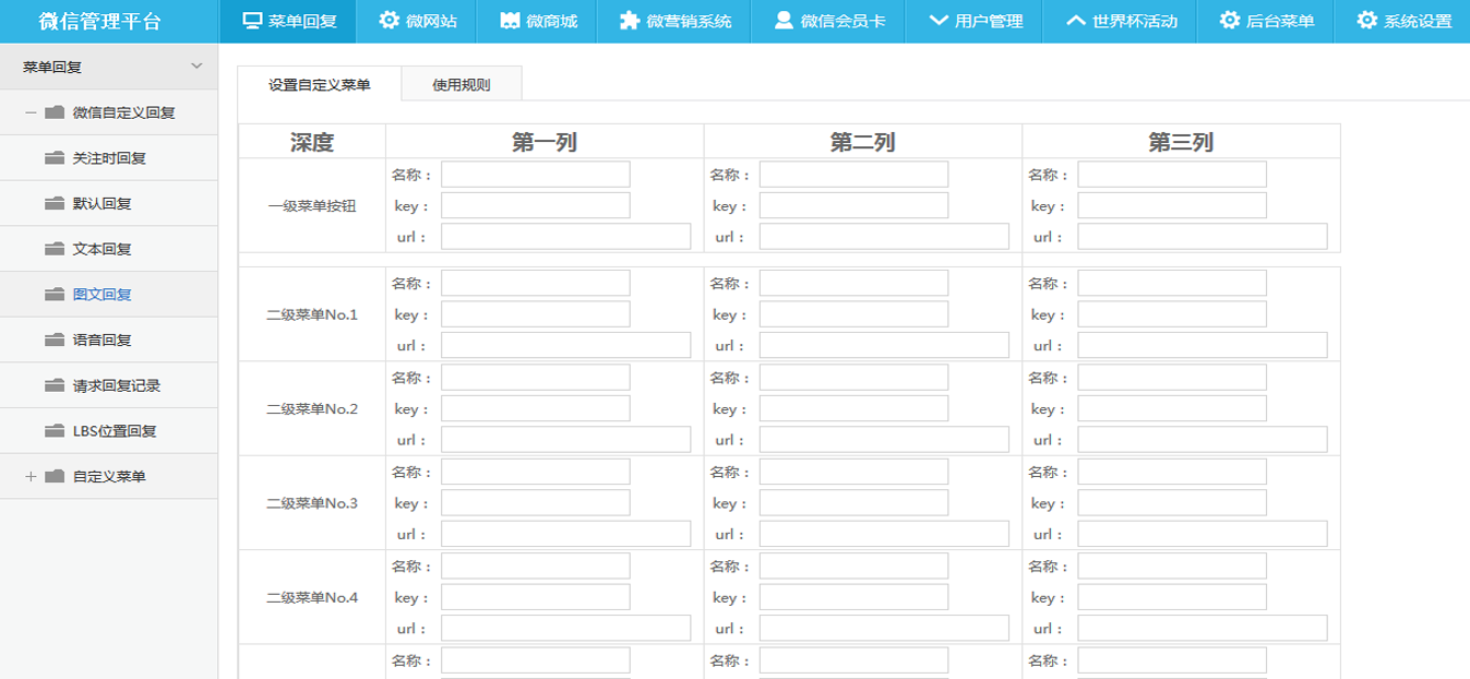 1.自由定制微信公众服务平台菜单,整合图书馆资源和服务。